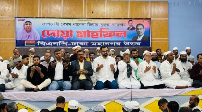 বিএনপি চেয়ারপারসন বেগম খালেদা জিয়ার সুস্থতা কামনা করে নেত্রকোনার দুর্গাপুরে পৌর বিএনপি‘র সভাপতি আতাউর রহমান ফরিদের উদ্যোগে এক দোয়া ও মিলাত মাহফিল অনুষ্ঠিত হয়েছে। রবিবার (৩০ নভেম্বর) বাদ জোহর পৌরশহরের