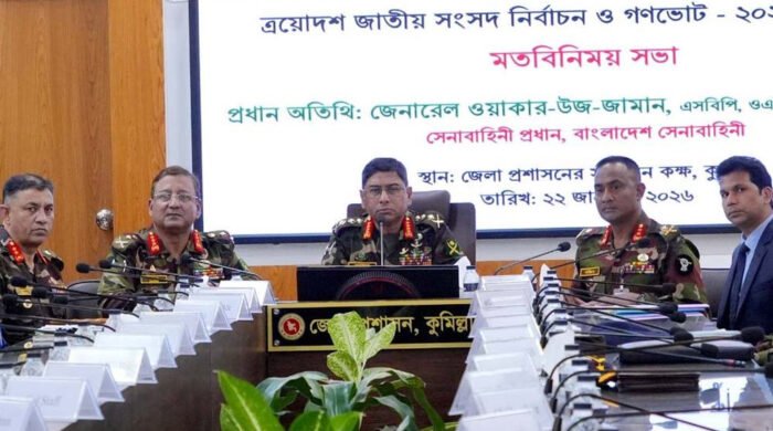 জাতীয় সংসদ নির্বাচন ও গণভোট উপলক্ষে সার্বিক আইন-শৃঙ্খলা পরিস্থিতি মূল্যায়ন এবং ‘ইন এইড টু দ্য সিভিল পাওয়ার’-এর আওতায় মোতায়েনরত সেনা সদস্যদের পরিদর্শনের লক্ষ্যে চট্টগ্রাম ও কুমিল্লা এরিয়া পরিদর্শন করেছেন সেনাবাহিনী