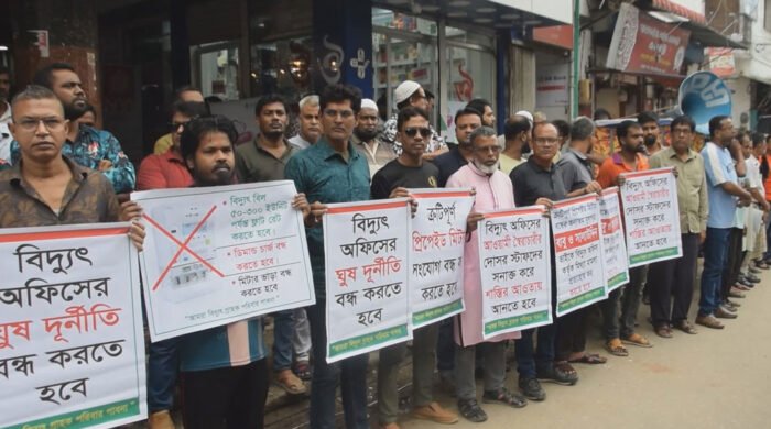 পাবনা জেলায় বিদ্যুতের ‘ত্রুটিপূর্ণ’ প্রিপেইড মিটার স্থাপন কার্যক্রম বন্ধের দাবিতে মানববন্ধন কর্মসূচি পালন করেছে ভুক্তভোগীরা।রবিবার (২ নভেম্বরর) সকালে পাবনা প্রেস ক্লাবের সামনে আব্দুল হামিদ রোড়ে এই মানববন্ধন কর্মসূচি পালন করেন